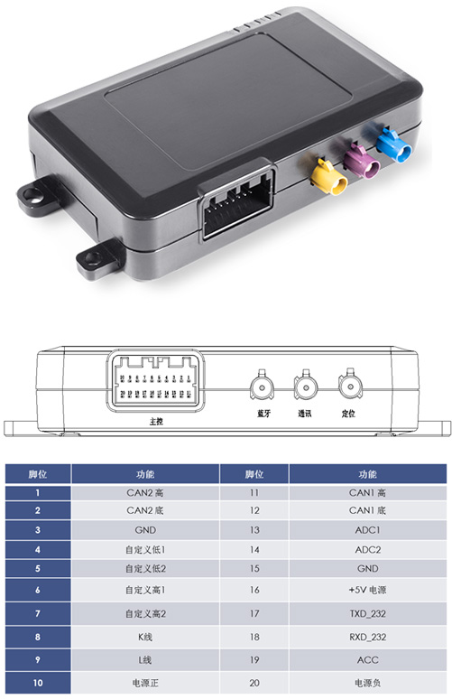 集成4G通信技術和北斗衛(wèi)星定位技術,通過與車身CAN數據交互,實現車聯網功能。安裝應用在重型車上于采集、存儲和傳輸車輛OBD信息和發(fā)動機排放數據和發(fā)動機排放