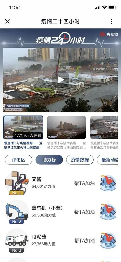 期間,「全民監(jiān)工」一時成為微博上的熱搜,宅在家里的人們在線觀看火神山、雷神山的建設(shè)過程。