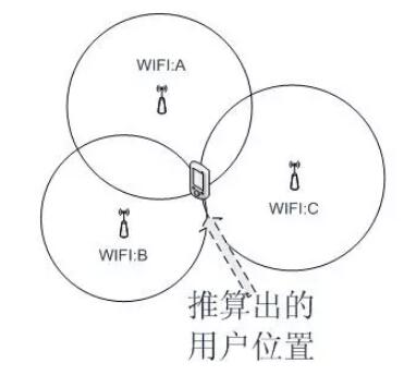 WiFi定位一般采用“近鄰法”判斷,即最靠近哪個(gè)熱點(diǎn)或基站,即認(rèn)為處在什么位置,如附近有多個(gè)信源,則可以通過交叉定位(三角定位),提高定位精度。