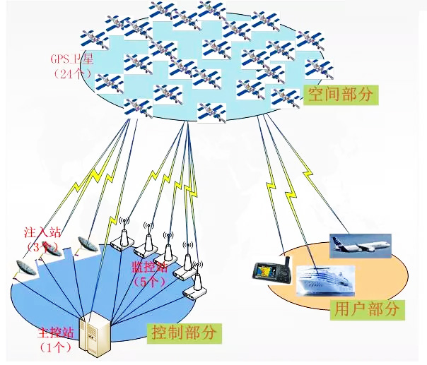 GPS全球衛(wèi)星定位系統(tǒng)由三部分組成:空間部分、地面控制部分、用戶設(shè)備部分。