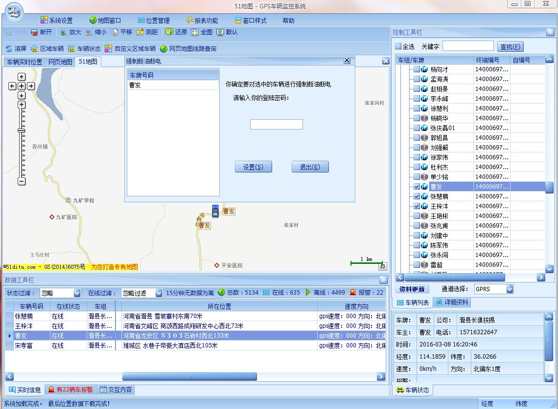 監(jiān)控管理單位所有車輛的即時準(zhǔn)確位置及車輛即時狀態(tài)。監(jiān)控信息包含車輛所在全國范圍內(nèi)準(zhǔn)確位置、車輛行駛狀態(tài)如速度、方向、經(jīng)緯度及有無超速、越界報警信息等。