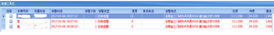 當(dāng)車輛出現(xiàn)緊急情況例如:搶劫、疲勞駕駛、GPS掉電、GPS天線開路、超速等都自動報警,便于監(jiān)控人員及時做處理。