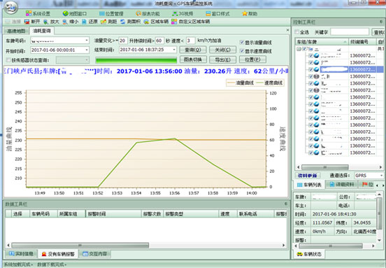 GPS后臺軟件查出任意時間段的耗油量及行駛公里數(shù)、百公里油耗等,并且可以繪出油量統(tǒng)計圖,了解任意時間段車輛耗油是否正常。方便企業(yè)管理者對所有車輛的油耗統(tǒng)計、成本核算,對非正常情況等做出準確判斷,讓“油耗子”無可趁之機。