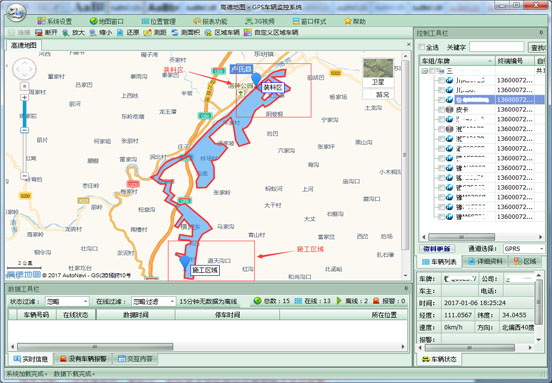 包括電子圍欄和偏離營運線路報警。管理者可以對車輛的運輸行駛路徑設(shè)定規(guī)定的行駛路徑范圍,一旦超出設(shè)定的路徑,則系統(tǒng)會自動提示報警。電子圍欄分為駛?cè)朐O(shè)定區(qū)域報警和駛出設(shè)定區(qū)域報警,偏離營運線路報警設(shè)定的限值為半徑0.1KM。車輛違章越界行駛記錄都會在系統(tǒng)中自動記錄。