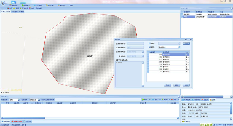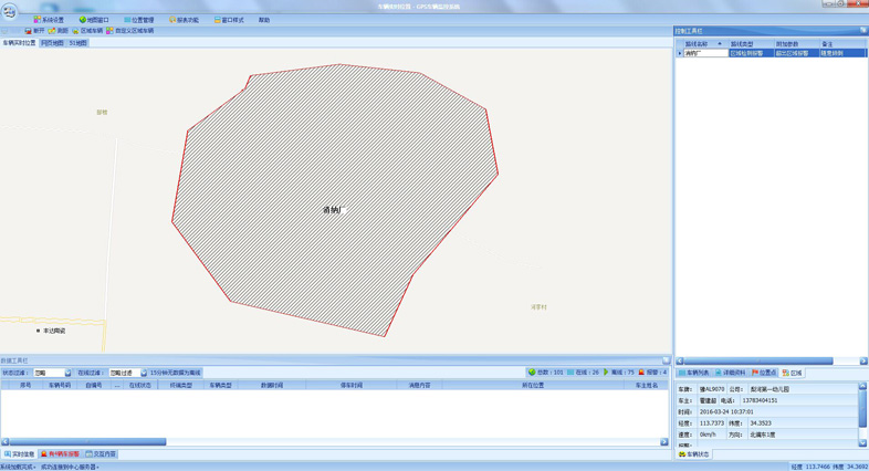 包括電子圍欄和偏離營(yíng)運(yùn)線路報(bào)警。管理者可以對(duì)車輛的運(yùn)輸行駛路徑設(shè)定規(guī)定的行駛路徑范圍,一旦超出設(shè)定的路徑,則系統(tǒng)會(huì)自動(dòng)提示報(bào)警。電子圍欄分為駛?cè)朐O(shè)定區(qū)域報(bào)警和駛出設(shè)定區(qū)域報(bào)警,偏離營(yíng)運(yùn)線路報(bào)警設(shè)定的限值為半徑0.1KM。車輛違章越界行駛記錄都會(huì)在系統(tǒng)中自動(dòng)記錄。