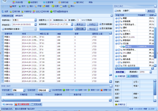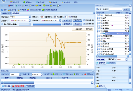 GPS后臺(tái)軟件查出任意時(shí)間段的耗油量及行駛公里數(shù)、百公里油耗等,并且可以繪出油量統(tǒng)計(jì)圖,了解任意時(shí)間段車輛耗油是否正常。方便企業(yè)管理者對(duì)所有車輛的油耗統(tǒng)計(jì)、成本核算,對(duì)非正常情況等做出準(zhǔn)確判斷,讓“油耗子”無(wú)可趁之機(jī)。